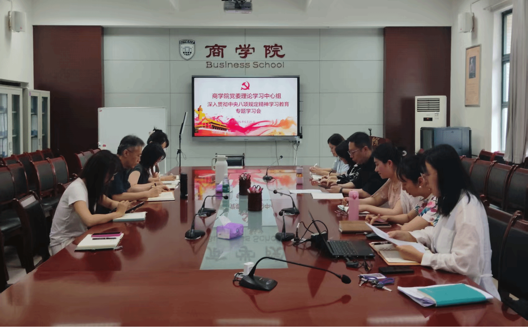 在深入贯彻中央八项规定精神学习教育专题学习中,党务秘书唐歌、本科生会计第一党支部书记吴双、办公室主任李田分别带领与会人员学习了《违反中央八项规定及其实施细则精神典型案例》和《习近平关于加强党的作风建设论述摘编》《习近平总书记关于党的建设的重要思想概论》部分章节。