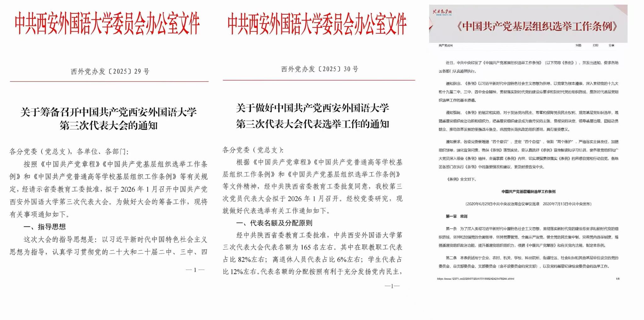 会议伊始,研究生第一党支部书记张雷领学《关于筹备召开中国共产党西安外国语大学第三次代表大会的通知》,系统阐释大会的指导思想、主要议程与组织领导机制。随后,刘旭东解读《关于做好中国共产党西安外国语大学第三次代表大会代表选举工作的通知》,重点说明代表名额分配、资格条件及选举程序规范。与会党员集体观看了《中国共产党基层组织选举工作条例》选举实施部分的系列微视频,深化对无记名投票、监票计票等关键环节的理解。