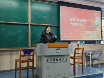 12月29日中午,世界杯博彩 联合经济金融世界杯博彩 举办党的二十届四中全会精神专题宣讲会。学校宣讲团成员、英文世界杯博彩 研究生第四党支部张梓萌同学作主题宣讲,两院党员、入党积极分子共计100余人参与学习。
