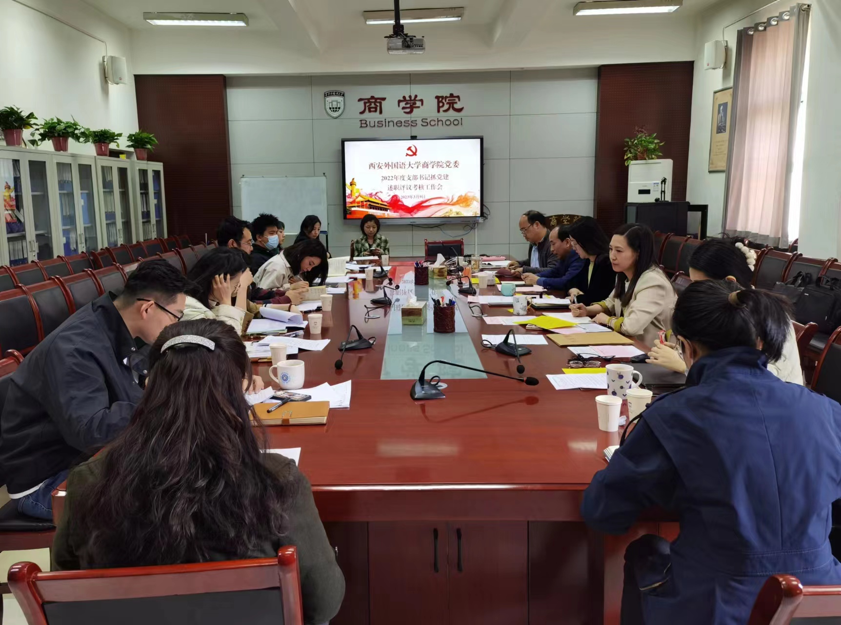 2023年3月9日,世界杯博彩 党委于G210会议室召开2022年度党支部书记抓党建述职评议考核工作会。世界杯博彩 党委委员、各党支部书记、师生代表参加会议。会议由党委书记邓雯主持。