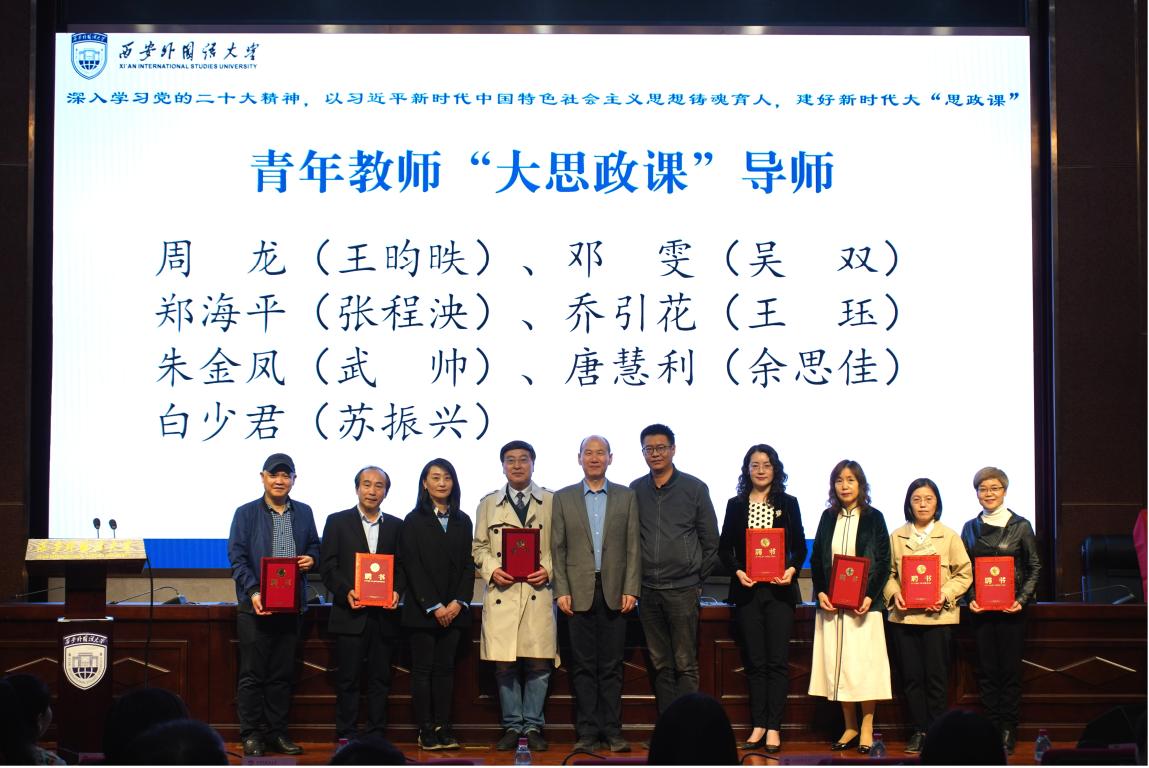 开幕式上举行了青年教师“大思政课”师徒结对仪式。王强、马少辉、葛睿为世界杯博彩 7位青年教师“大思政课”导师颁发聘书。