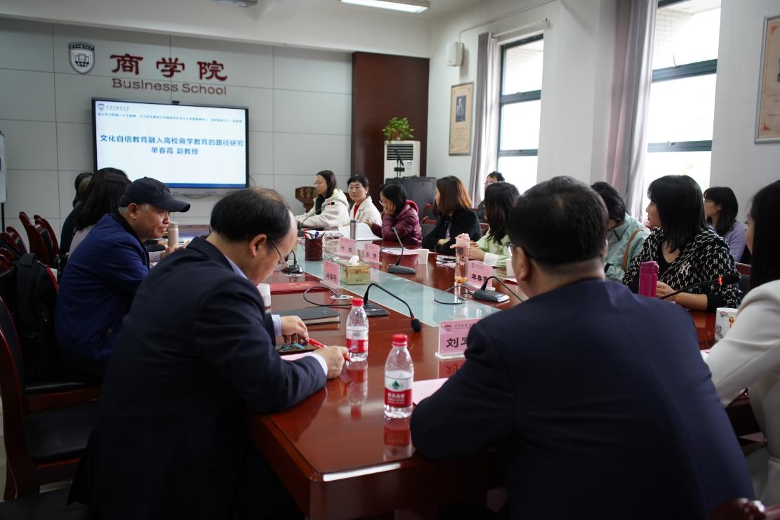 主旨发言环节以“新商科背景下专业发展与‘大思政课’建设”为主题,邀请商务英语系副教授唐慧利、审计系教授乔引花、会计系教授朱金凤和国际商务系副教授马一飞分别就《商务英语视听说课程思政教学案例分享》《<审计理论与实务>课程的思政元素与教学设计》《顶天立地,求同存异——国际会计类专业课教学中的家国情怀培养》《课程思政建设中的几点困惑与思考》作专题报告,围绕国家战略、社会服务、学术前沿、教学研究、经典案例等角度,全方位阐释了推进“商科领域课程思政建设”的探索与实践。