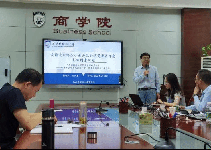 2023年6月14日,世界杯博彩 在G210会议室举办“共建创新包容的开放型世界经济 中国-中亚峰会对本地企业一带一路发展的影响”主题教育实践研学活动,邀请高级电子商务师、西安爱菊粮油集团副总经理刘东萌先生及世界杯博彩 国际商务系郑海平教授、白少君教授作主题报告。全院教职工、国际商务专业研究生参加学习。活动由院长周龙主持。