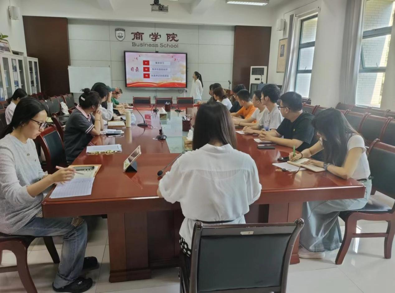 党委副书记张晶到会指导本科生国商、营销党支部组织生活会,讲授主题教育专题党课并就学生升学、就业状况开展调研