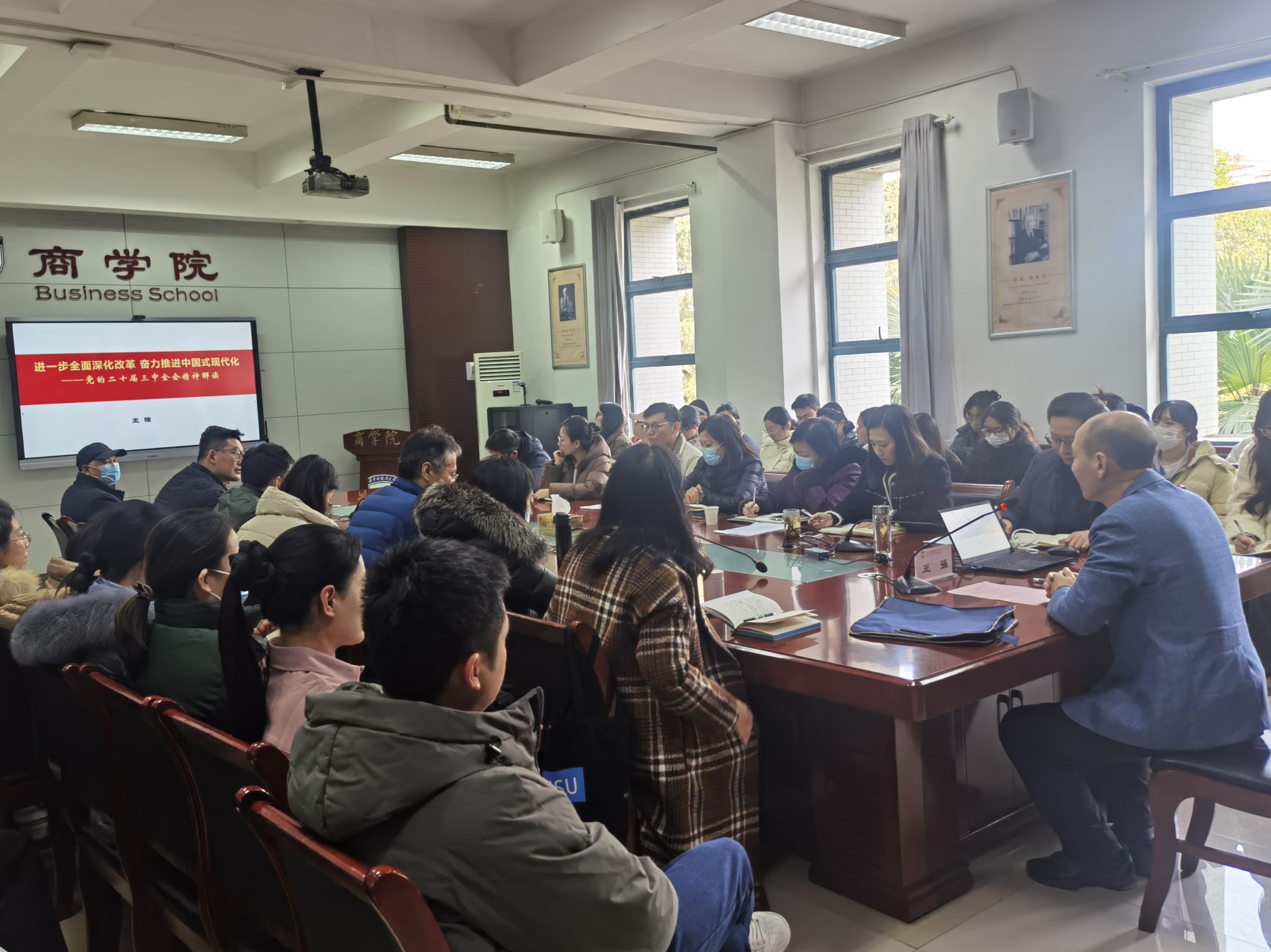 王强指出,党的二十届三中全会是新的历史起点上进一步全面深化改革,推进中国式现代化的总动员、总部署。学习贯彻好党的二十届三中全会精神,是全校各级党组织和党员干部当前和今后一个时期的重大政治任务。要深入学习领会党的二十届三中全会精神,正确领会新时代全面深化改革的新思想、新观点、新论断,切实把思想和行动统一到以习近平同志为核心的党中央决策部署上来,以实际行动坚决拥护“两个确立”、坚决做到“两个维护”。