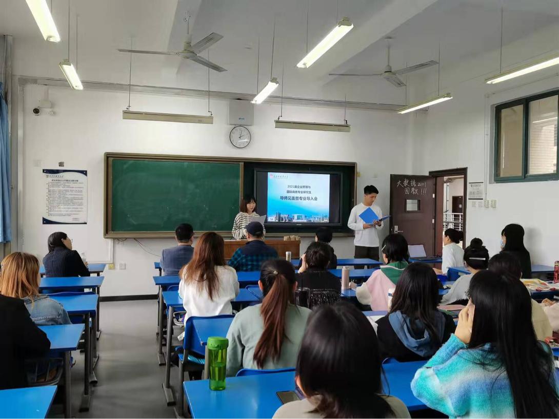 2021年9月26日下午2点,世界杯博彩 国际商务专业型硕士以及企业管理学术型硕士导师见面会暨专业导入会在西安外国语大学长安校区JF311教室顺利召开。研究生院副院长申海教授、世界杯博彩 副院长耿紫珍教授、世界杯博彩 实验教学中心主任赵晓罡教授、大数据管理与应用系主任朱美琳副教授、国际商务系主任薛晋洁副教授、白少君教授和工商管理系桑晓婧教授、王敏副教授以及2021级国际商务硕士和企业管理硕士的全体同学参加了本次专业导入会。