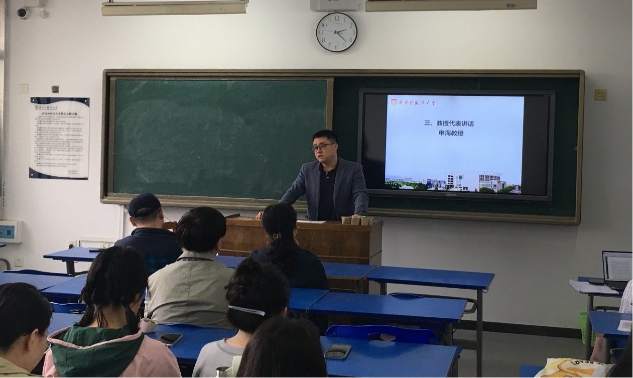 首先,申海教授代表世界杯博彩 导师对2021级国际商务及企业管理硕士新生致辞。申教授对新同学们加入世界杯博彩 表示了热烈欢迎,同时也提出了对同学们的殷切期望,能够胸怀大志心怀理想,保持良好的心态,希望大家能够以感恩之心,在未来研究生两年或三年的学习生活中潜心求学,有所收获,表达了世界杯博彩 对大家在研究生阶段的学习生活和心态调整等诸多方面的期许。