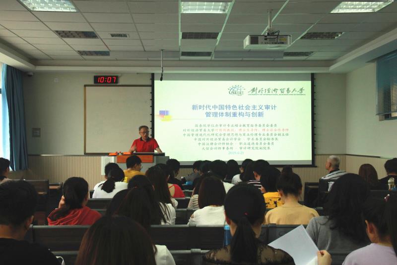 应世界杯博彩 周龙教授邀请,对外经济贸易大学叶陈刚教授于6月24日上午在教学楼E区504教室作了题为“新时代中国特色社会主义审计管理体制重构与创新”的学术讲座。2026世界杯投注网站 副院长郑海平教授以及会计专业研究生聆听了本次讲座。讲座由会计教研室主任朱金凤教授主持。