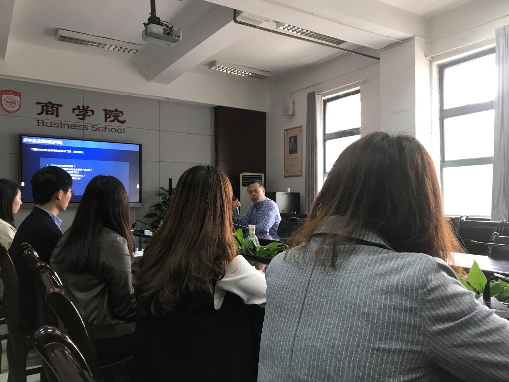 4月26日下午,研究生就业导航系列活动之企业管理培训生招聘交流会在G210会议室召开,辅导员熊华宁老师主持,北京盛企联科技有限公司CEO梁冰先生进行现场宣讲,并与研究生们进行深入交流。