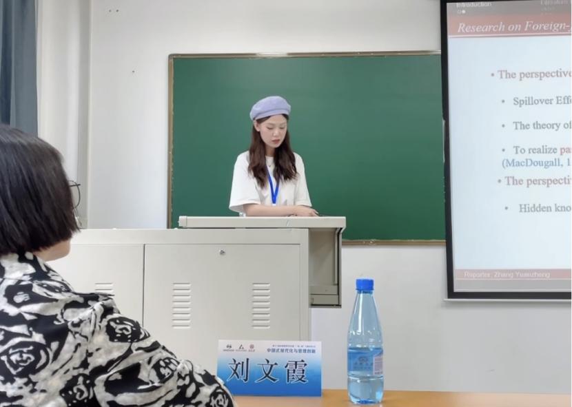 国际商务专业硕士张苑峥就《The Effects of Entrepreneurial Orientation on Entrepreneurial Performance of Foreign Derivative Firms: A Moderating Role Based on Cross-Cultural Absorptive Capacity》进行汇报。她基于对外资衍生企业的概念进行炼化和总结,在研究情景上补充了外资企业作为母体组织背景的创业导向研究。研究结论对在外资企业任职的拥有技术和资源的创业者提供了相关理论支持,帮助他们在此机制下更好的习得和应用所拥有的技术和资源进行创业和经营,为潜在的创业者提供了方法和决策支持。