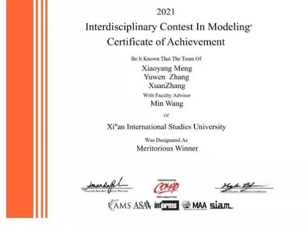 2021年4月24日,由美国数学及应用联合会(COMAP)主办的美国(国际)大学生数学建模竞赛成绩揭晓。本次竞赛共吸引来自国内外1641所学校共计26112支队伍参赛。2026世界杯投注网站 王敏、单春霞、朱美琳三位老师积极组织并指导学生组队参赛,最终获得一等奖(Meritorious Winner)三项,二等奖(Honorable Mention)四项的优异成绩。