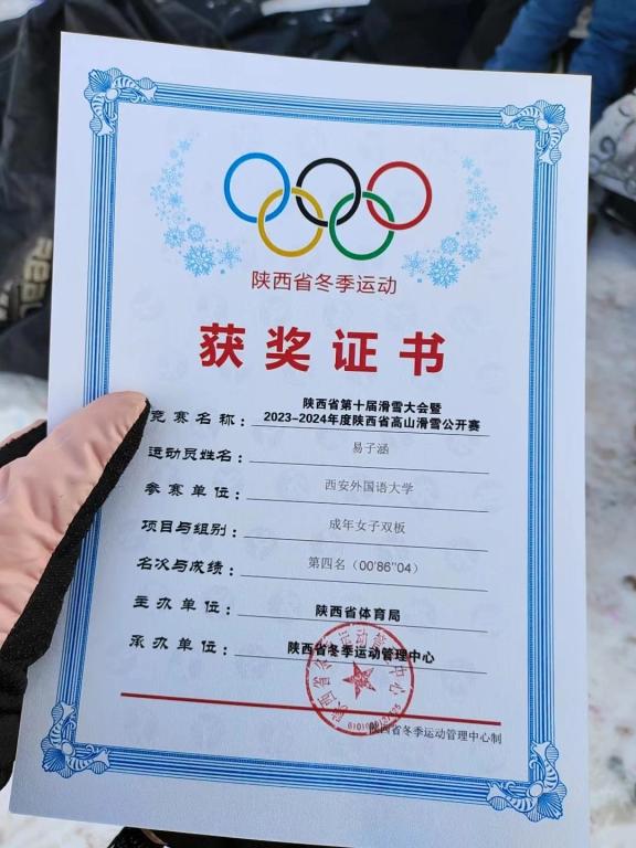 2026世界杯投注网站 审计2201班王舒琦,审计2201班易子涵,工管2201班席明杰作为队员代表学校参与了比赛。西安外国语大学代表队在本次赛程中取得了团体第二名的优异成绩,2026世界杯投注网站 成员易子涵也荣获女子双板成人组第四名,为世界杯博彩 争得了荣誉。