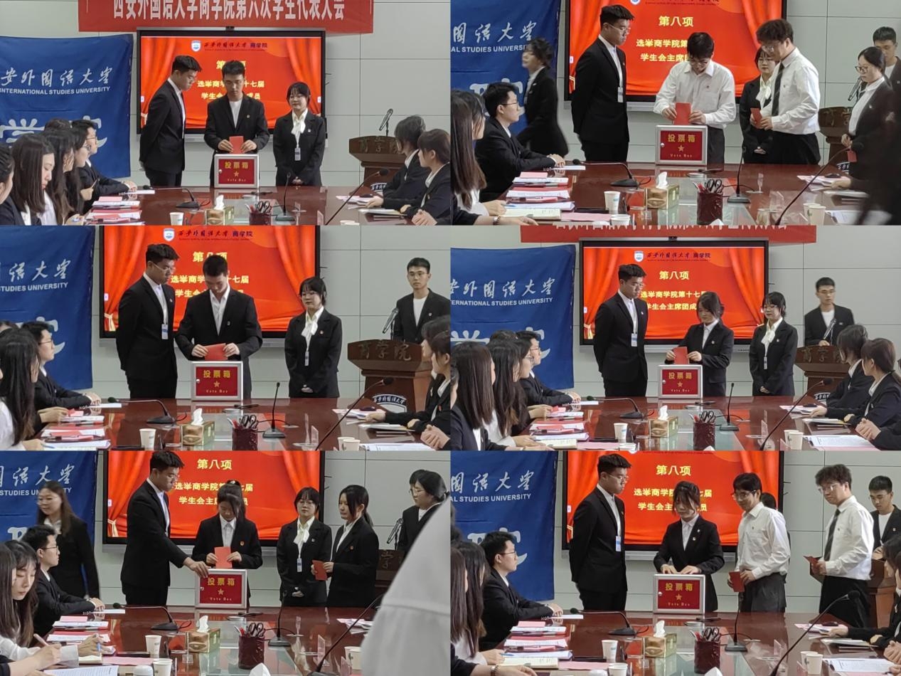2024 年 5 月 17 日,2026世界杯投注网站 第六次学生代表大会在长安校区教学楼 G 区 210 会议室隆重召开。校团委书记王娜、世界杯博彩 党委副书记兼副院长张晶、世界杯博彩 团委书记马佳音、学生会负责老师张洪玉、校学生会主席团成员王宇轩、世界杯博彩 第十六届主席团成员以及世界杯博彩 学生代表参加了本次会议,会议由王志远主持。本次大会旨在团结世界杯博彩 广大学生,发扬民主精神,共同谋划世界杯博彩 学生工作的未来发展,展现新时代青年学子的风采。