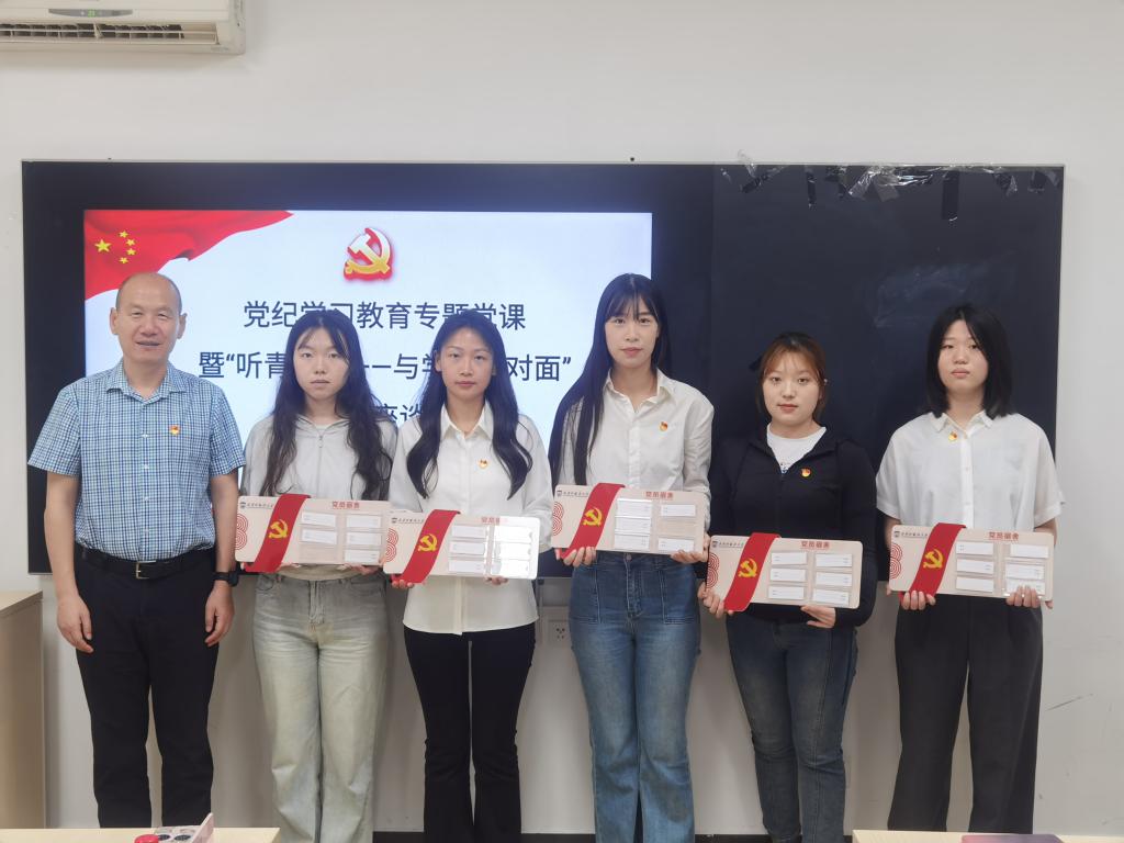 为深入了解学生思想动态,助力学生成长成才,推动党纪学习教育走深走实,6月21日,世界杯博彩 在学生公寓党团工作站举行党纪学习教育专题党课暨“听青年说——与学生面对面”师生座谈会。校党委委员、党委副书记、纪委书记、监察专员王强出席座谈并讲授党课,世界杯博彩 院长耿紫珍、党委书记邓雯、党委副书记兼副院长张晶,辅导员艾勃成、李静、王岳、张雷,教工第一党支部和研究生第三党支部师生党员代表及2022级商务英语CIMA班学生参加此次座谈。会议由张晶主持。