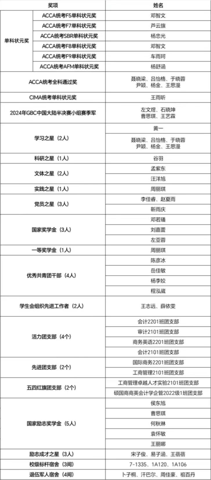见贤思齐,踔厉奋发。晚会过程中,进行2023-2024年度颁奖典礼,对荣获国家奖学金、国家励志奖学金学生代表及标杆宿舍、退伍军人宿舍进行表彰,同时为2024届在校期间积极向上,表现优异的毕业生颁发“商院之星奖”,并对在ACCA、CIMA全球统考中成绩优异的学生进行表彰。希望榜样的力量能够继续引领商院学子披荆斩棘,再攀高峰!