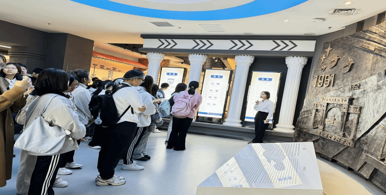 步入校史馆内部,学生们被琳琅满目的历史图片、珍贵文献与实物展品所包围,这些生动直观的资料全方位、深层次地展示了学校的发展历程、鲜明的办学特色及杰出校友的卓越成就。讲解员以细腻的解说引领众人有序参观,同时穿插互动问答,极大地深化了学生们对学校深厚历史文化的认知与感悟。