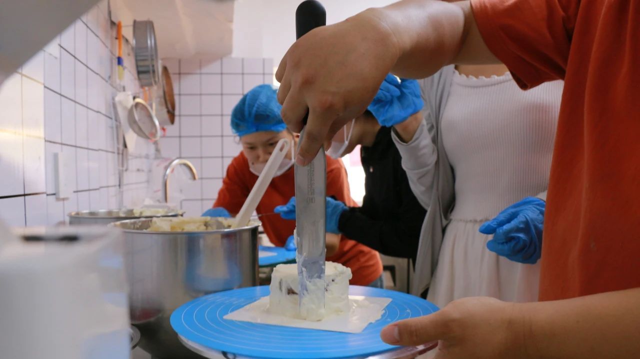 烘焙实践区充满现代生活美学,从打发奶油到设计裱花,同学们在过程中掌握烘焙技巧,在装饰中展现创意才华,烤箱中溢出的香甜气息成为劳动成果的最佳体现。同学们分工协作、取长补短,在互相切磋中既提升了劳动技能,更培养了团队精神。