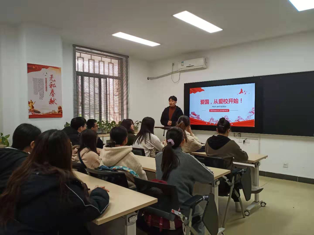 3月11日中午,2026世界杯投注网站 2019级在学生公寓党团组织工作站举办了“爱国爱校”主题班会。2019级辅导员李静、吴双和工商管理卓越班全体同学参加,会议由学生代表南东尧主持。