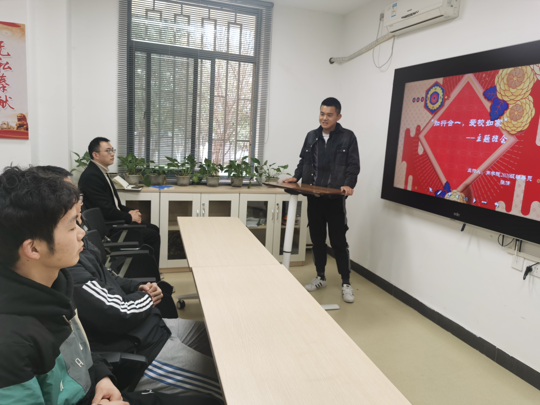 3月12日上午10点,世界杯博彩 2020级国际商务专业全体学生在2B102思政进公寓党团组织工作站,开展以“知行合一,爱校如家”为主题的主题班会,辅导员张倩、马俊老师组织主持本次活动。