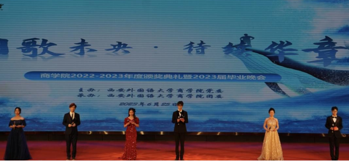 轻装策马青云路,人生从此驭长风。至此,本次颁奖典礼暨2023届毕业晚会圆满结束。毕业是又一次扬帆远航的新征程,亦是下一段精彩人生的新起点。骊歌未央,祝愿2023届毕业生们带着母校最真挚的祝福,扬起梦想的风帆,踏上更加精彩的旅程。待续华章,希望2023届毕业生们始终牢记“爱国、勤奋、博学、创新”的西外校训,在新时代新天地中砥砺奋进、建功立业,奔赴山海,乘风破浪!(图:张雷、张宇轩;文:田星河; 审核:张晶)