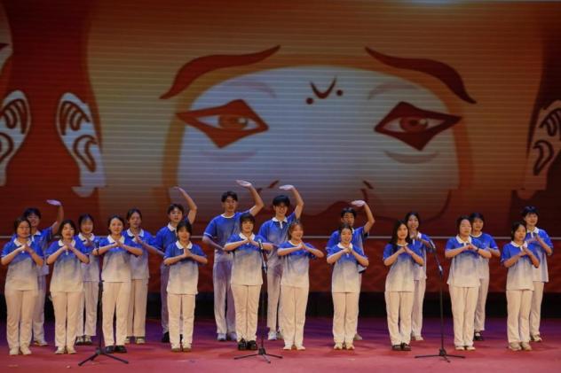 RAP串烧《冲吧!少年》四射的活力展现着青春姿态,酷炫的身影诉说着奋发意气。话剧《周日去哪儿了》将同学们拉回昔日校园时光,以诙谐幽默的表演形式,引导同学们在笑声中反思自己的生活状态和学习节奏,为同学们开展了一堂生动的思政课。《云锦风起》通过国风走秀的形式,讲述中华文化积淀及传统文化之美,展现了青年群体的文化自信。