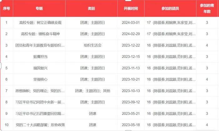 本支部不断加强对团员青年的思想政治教育,积极向党组织靠拢,深入学习宣传贯彻习近平新时代中国特色社会主义思想和习近平总书记关于青年工作的重要思想,组织开展了各种有针对性内容的专题理论学习会,切实把思想教育工作做在日常、抓在经常。自2023年5月以来全年开展相关学习或实践主题活动11次。