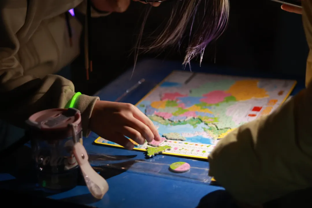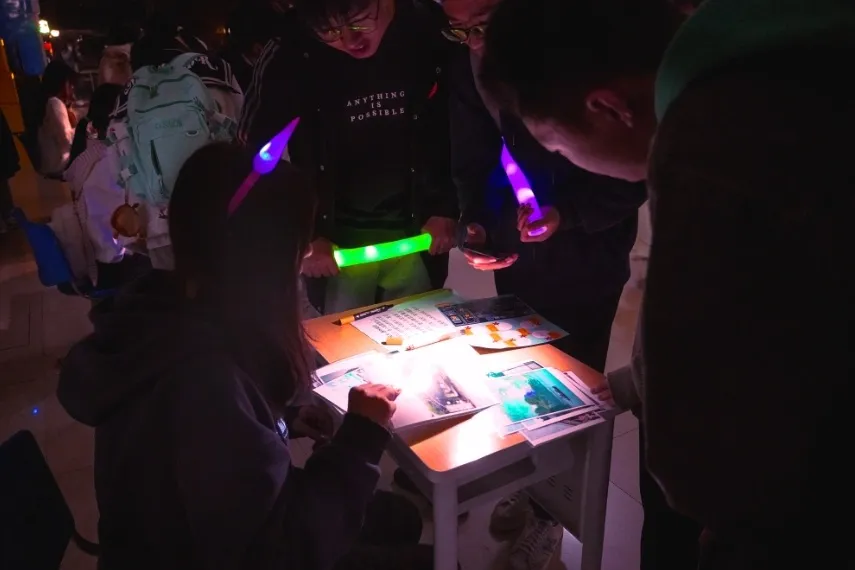 本次荧光夜跑活动以新中国发展的历史征程为主线,精心打造了包含惊喜环节在内的8个独具特色的游戏项目,分别是乒乓接力,快乐传递;辽阔江山,常驻心田;打倒坏习惯,争做好青年;五环精神聚,携手奥运;共襄国盛举,经典咏流传;祖国风光,西外风彩;忆百年征程,庆祖国昌盛;神秘荧光人,国旗寻宝行(附加游戏)。内容涉及考察个人记忆力的英文诗词背诵、描述祖国壮美山河的答题竞猜、团队协作配合的乒乓接力游戏等,不仅考验参赛者的体能与方向感,更在无形中强化了他们的意志品质与团队合作精神。