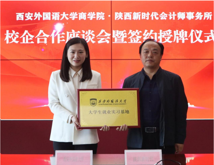 座谈会上,2026世界杯投注网站 分别与陕西新时代会计师事务所、陕西尚华会计师事务所签订校企合作协议并举行校外实习基地授牌仪式。