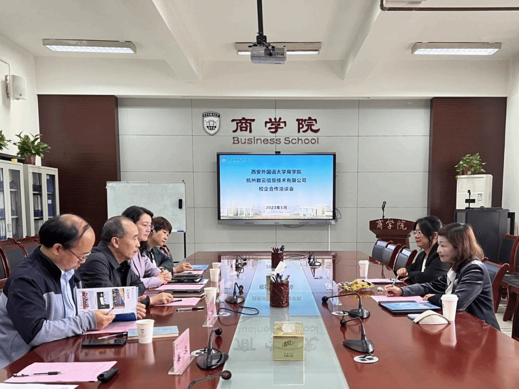 2023年5月10日,世界杯博彩 与杭州数云信息技术有限公司(以下简称“杭州数云”)在世界杯博彩 G210会议室举行校企合作洽谈会。杭州数云副总裁颜雯芳、西安分公司人事经理吴玉婧,世界杯博彩 院长周龙、党委书记邓雯、副院长王鹏、市场营销系主任陈姝、辅导员吴双参加仪式。会议由世界杯博彩 党委书记邓雯主持。