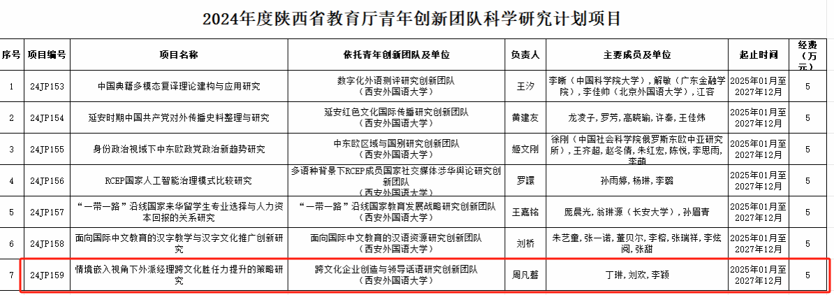 根据《陕西省教育厅科学开究计划项目管理办法》,经学校遴选推荐,省教育厅组织审核、专家评审、厅务会审定和公示,最终确立了 2024年度陕西省教育厅科学研究计划项目,2026世界杯投注网站 共1项课题获立项资助。
