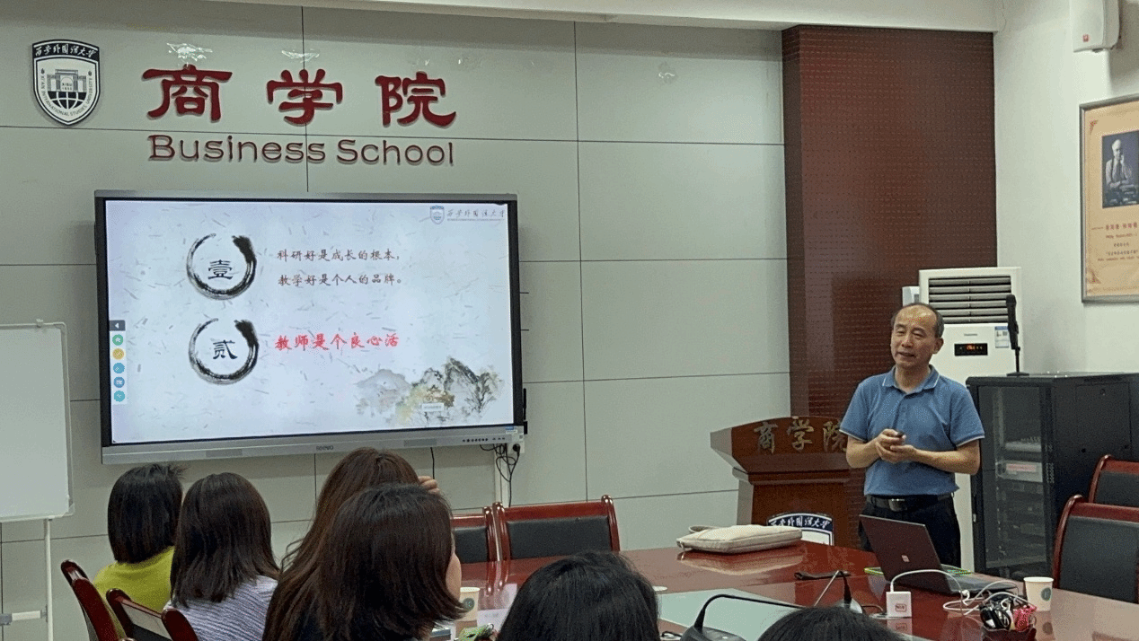 大道:教师应以立德树人为根本,兼顾科研与教学,二者相辅相成;中道:热爱与敬业是教学的动力与保障。周教授将讲课视为“布道”,鼓励教师从资深同行的课堂中汲取经验,做“中听中用的一品老师”;小术:商科教师需注重实践,从精心设计第一节课、邀请行业精英进课堂、勇于开设前沿课程,到善用AI技术辅助教学四个方面进行展开讲解。他强调,课堂是教师的舞台,需以激情感染学生,以逻辑清晰的内容赢得认可,面对新时代教学之挑战,教师更需以“路漫漫其修远兮”的恒心精进教学,以“桃李不言,下自成蹊”的信念共赴育人之路。
