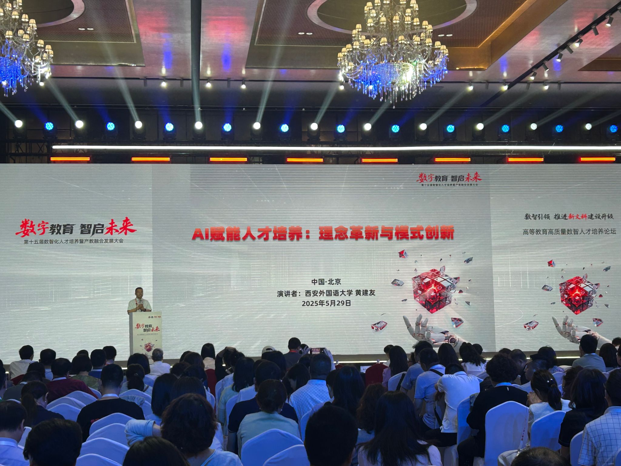 5月29日,由中国教育技术协会指导,首都经济贸易大学等主办的“第十五届数智化人才培养暨产教融合发展大会”在北京举行,全国教育部门、院校等1500余位代表参会。副校长黄建友应邀参会并发言。