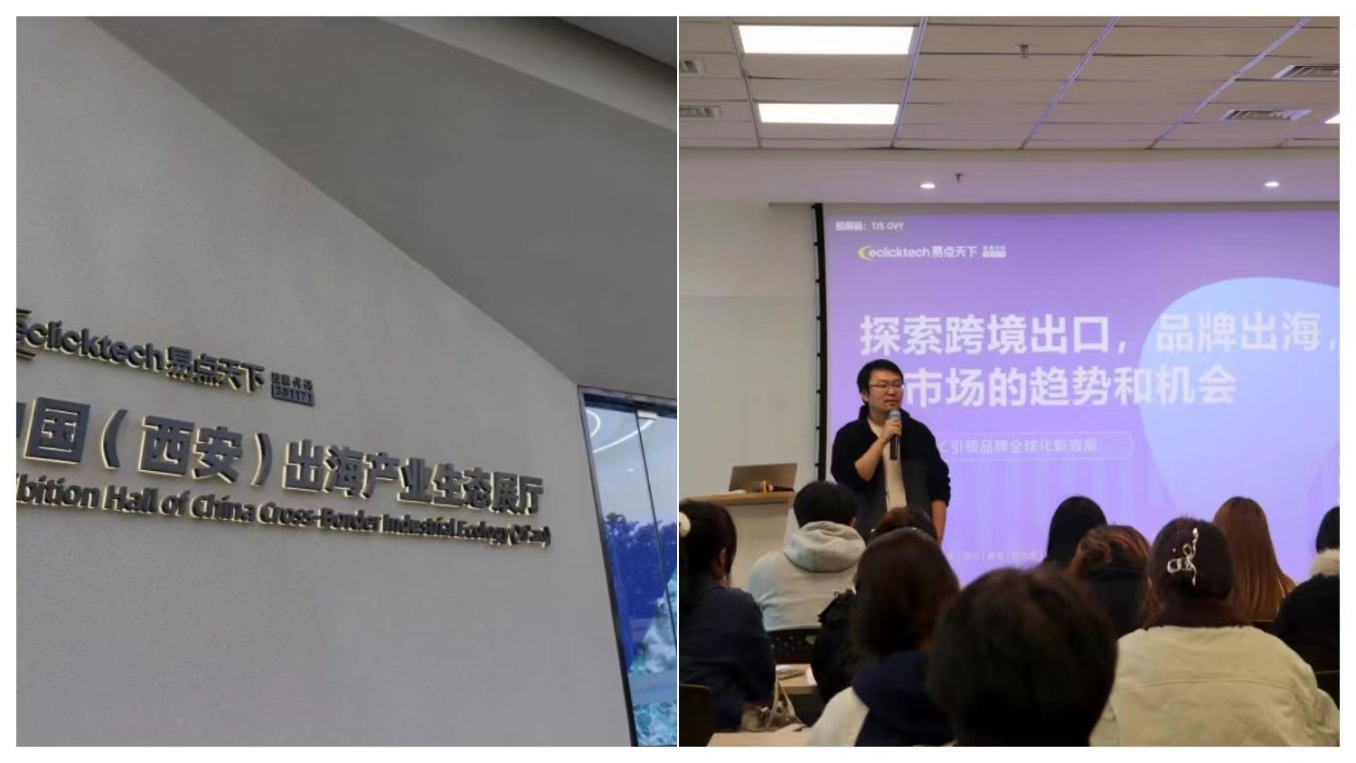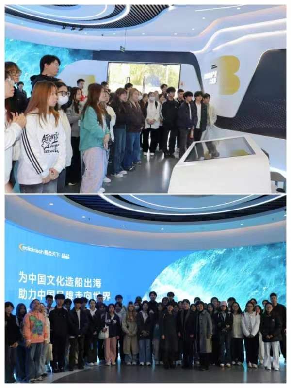易点天下业务覆盖全球238个国家和地区,核心服务涵盖效果广告、AI数字创意等多元领域,累计服务华为、SHEIN等超5000家企业。活动中,师生参观了中国(西安)出海产业生态展厅,通过数字展板、案例演示,系统了解易点天下的发展历程与技术应用,直观感受AI技术为跨境行业出海营销降本增效的实践成果。在专题分享会上,企业专家围绕海外市场趋势与机会展开讲解,剖析AIGC对品牌出海的重塑作用,介绍公司依托全球平台联动,助力品牌实现技术赋能与本地化表达双重突破的实践经验,为同学们带来前沿行业洞察。