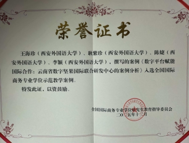 王海珍团队开发的原创案例《数字平台赋能国际合作:云南省数字坚果国际联合研发中心的案例分析》,经教指委组织专家评审,入选全国国际商务硕士专业学位示范教学案例,并获推荐进入中国专业学位案例中心案例库。该案例是国际商务学位点教师深入企业调研、开发一手教学案例的重要成果,体现世界杯博彩 在国际商务专业学位教育中的实践探索力度,提升在全国国际商务专业学位培养中的影响力,对专业硕士点的教学与建设具有积极示范作用。