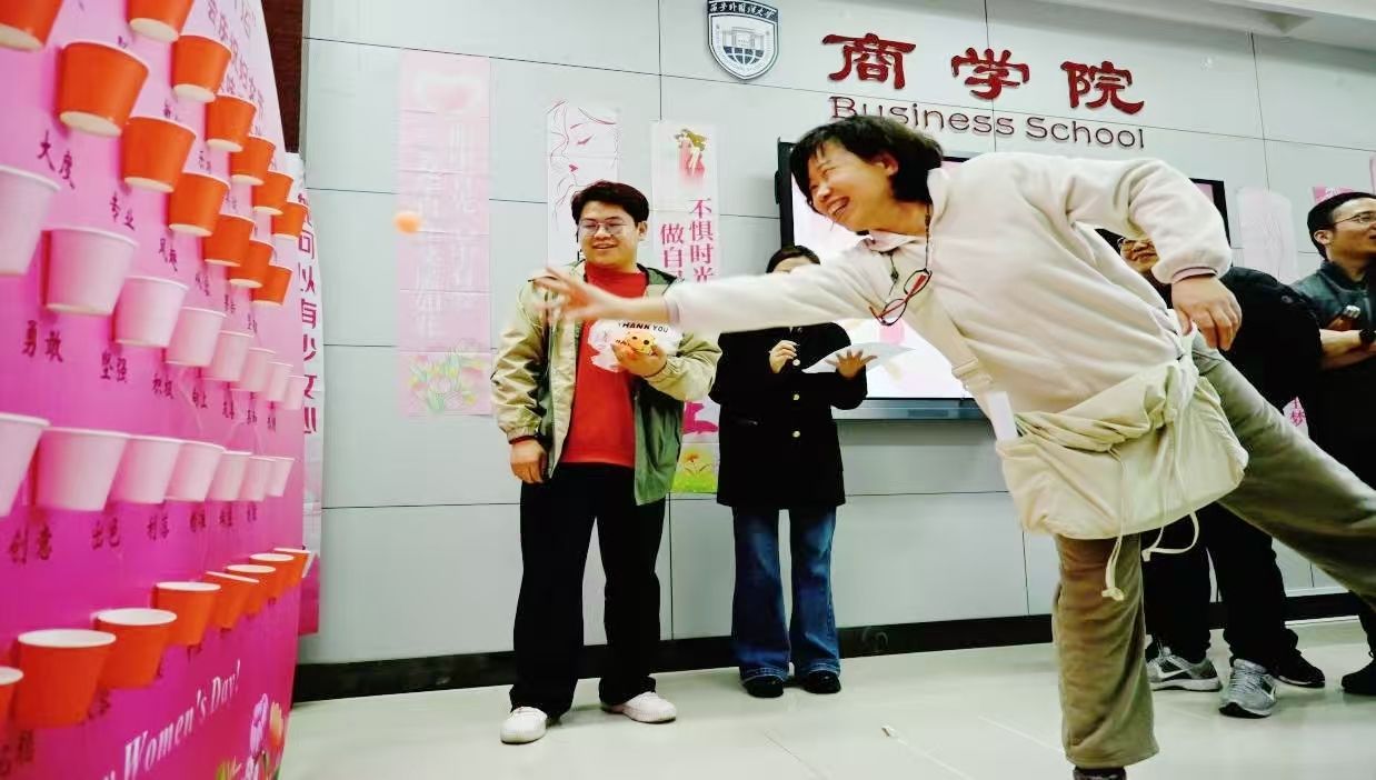 为庆祝“三八”国际妇女节,丰富世界杯博彩 教职工的文化生活,世界杯博彩 工会于教学楼E区210会议室举办了“巾帼逐乐·‘乒’出好运”趣味乒乓球投杯活动。为营造尊重女性、关爱女职工的良好氛围,活动特别邀请男职工作为支持者参与其中。