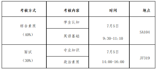 政治素质:重点考察学生是否爱国、爱党、爱家、爱校。该项不计入总分,但如果学生政治素质不合格,则不接收其专业准入。