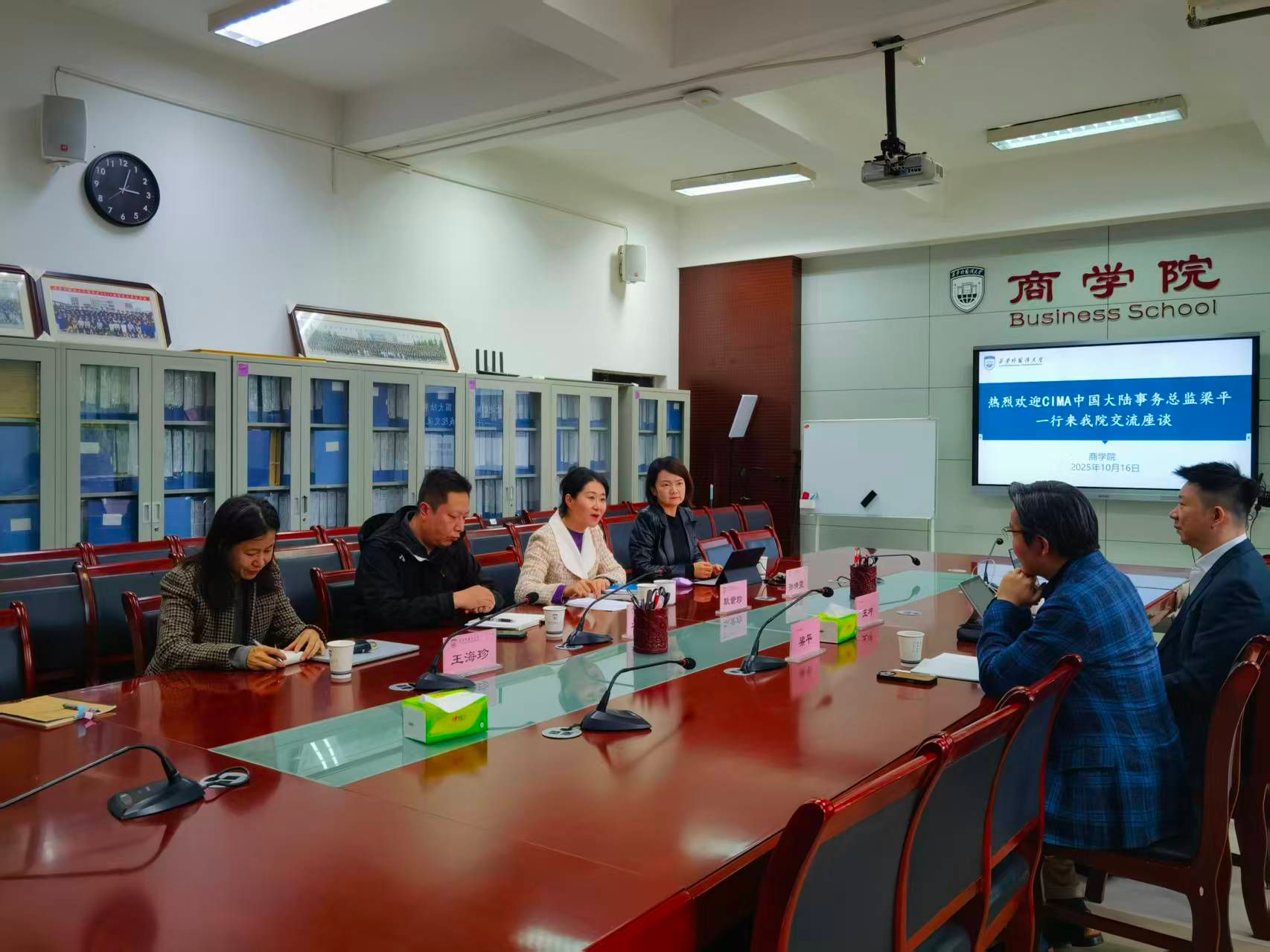 2025 年 10 月 16 日,CIMA中国大陆事务总监梁平一行莅临2026世界杯投注网站 ,围绕 CIMA 项目国际合作、人才培养创新等核心议题,与世界杯博彩 领导班子开展深度交流座谈。世界杯博彩 院长耿紫珍、党委书记冯达、副院长孙婧雯及工商管理系主任王海珍出席会议,共同为项目高质量发展凝聚共识。