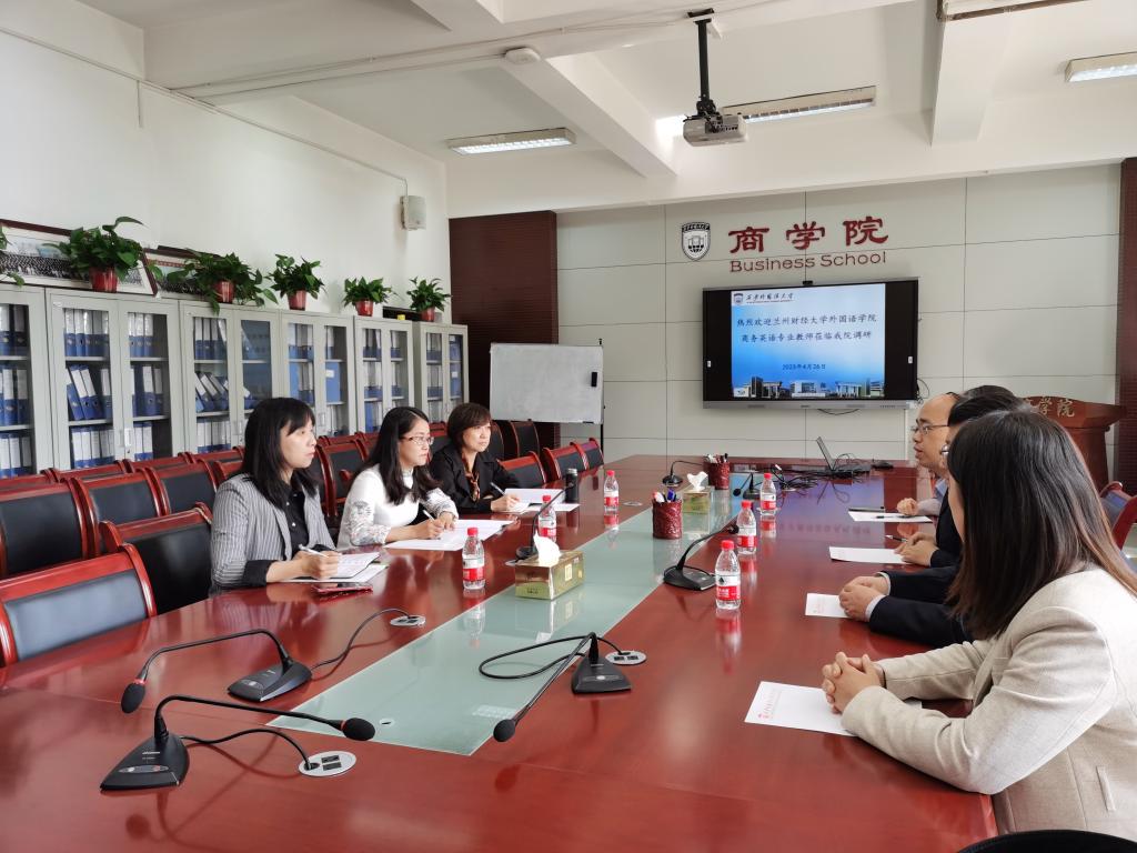 4月27日,兰州财经大学外国语世界杯博彩 商务英语专业负责人许菁、教研室主任李莹、副主任孙志婕三人前来2026世界杯投注网站 调研学习国家级“一流专业”建设经验。副院长王鹏、商务英语专业负责人刘军伟、教研室主任张嘉瑶、副主任王娜参加了交流座谈会。