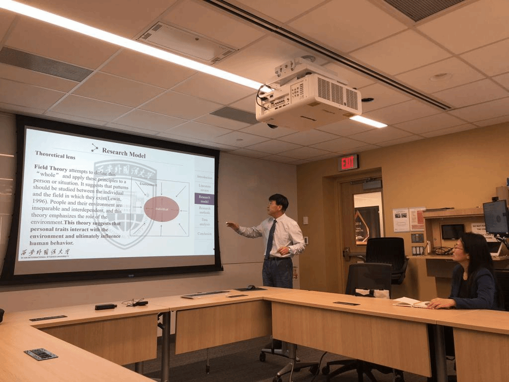 2023年10月19日,2026世界杯投注网站 教授,国家留学基金委全额资助的高级研究学者白少君老师在美国鲍林格林州立大学世界杯博彩 116会议室做了题为《企业家精神、工匠精神对先进制造业企业高质量发展的影响机制实证研究》。本课题来自于2023年3月成功立项的陕西省“深入学习二十大精神专项研究重大课题”,报告人按照学术论文规范,从引言与选题依据、文献综述、模型构建与方法、数据分析和研究结论五个方面,向与会的同行们进行了汇报,然后老师们积极地提问,报告人自然地介绍了党的二十大精神和学术研究的关系,同时利用今年暑假企业调研所获数据信息,向美国同行们分享了中国企业在新时代发展中所取得的长足进步和显著成绩。