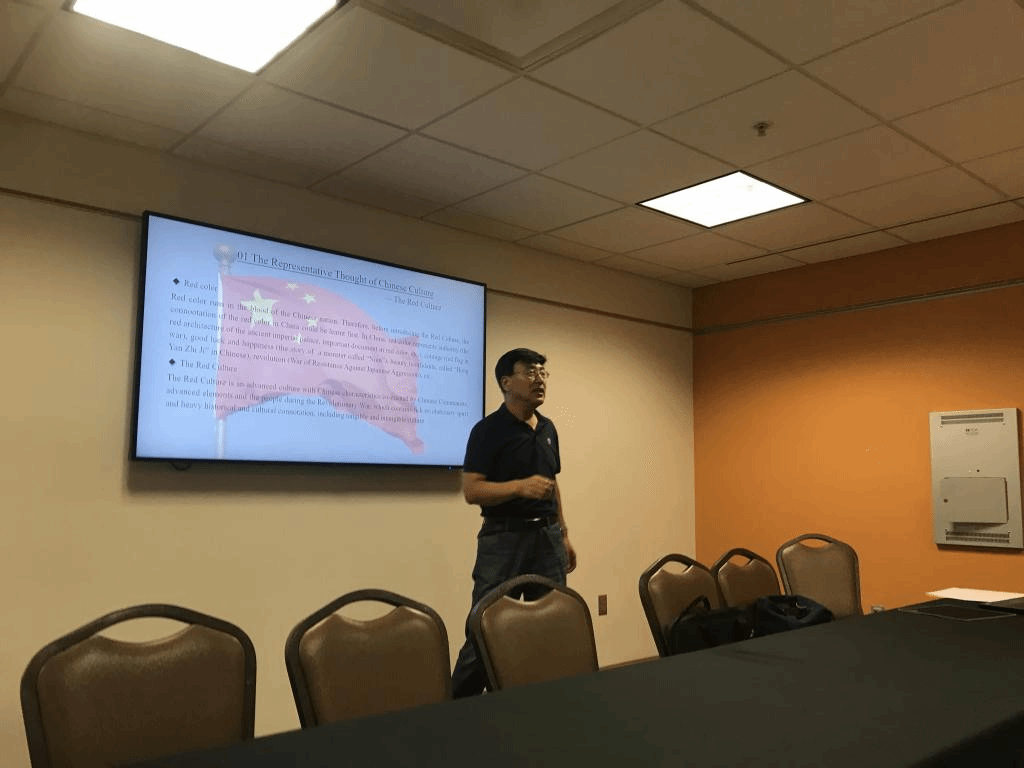 这场报告的题目是“中国文化和政府政策对商务活动的影响”。报告分为五个部分:中国传统优秀文化,红色文化,中美文化差异,政府政策和对商务活动的影响。各国听众在提问环节表现出对中国文化的极大兴趣和对中国政府政策对创新创业等商务活动的强烈好奇心。