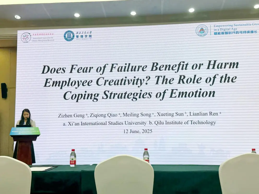 世界杯博彩 2022级企业管理硕士研究生乔紫琼汇报就被录用的论文 “Does Fear of Failure Benefit or Harm Employee Creativity? The Role of the Coping Strategies of Emotion” 进行汇报。其研究揭示了失败恐惧情绪的创造性潜力,启示管理者通过动态调控员工的失败恐惧水平、引导员工解决问题和因人而异地分配任务来最大化员工的创造力产出,提高团队和企业的整体创新效能。