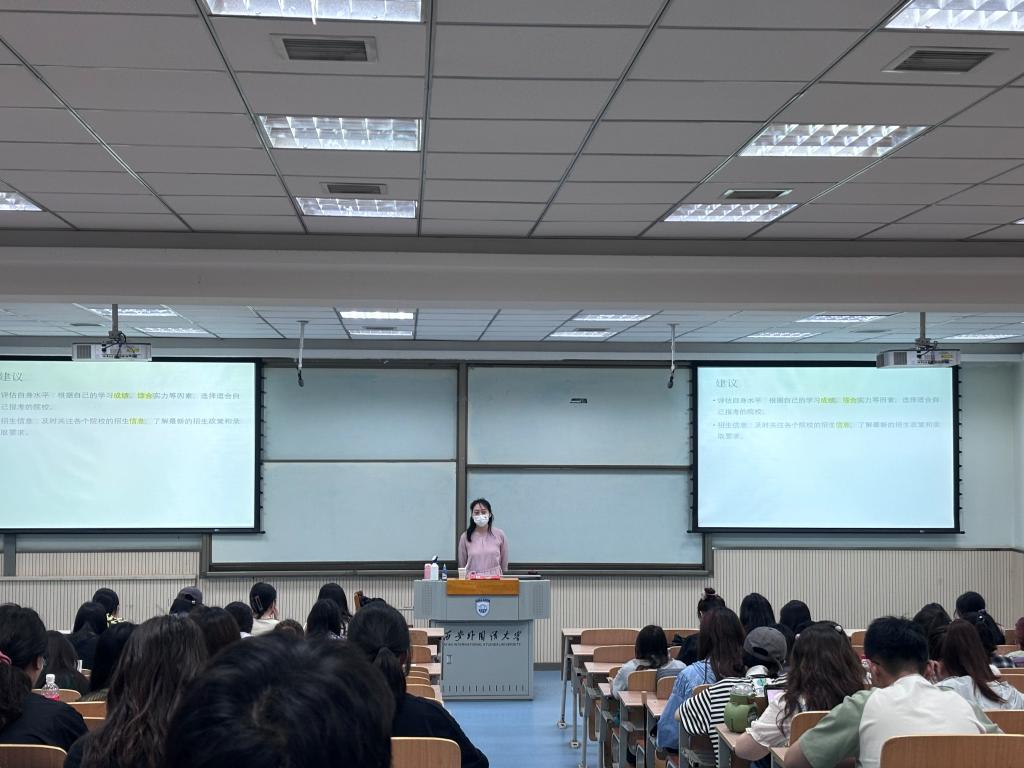 科研副院长薛晋洁为所有专业学生解读了2024全国研究生招生调查报告,从报考人数、逆向考研、人文社科竞争激烈等关键词让同学们了解2024年全国硕士研究生报考趋势。她建议学生要根据自己的学习成绩、综合素质等实际情况,选择适合自己的院校;同时要及时关注各个院校的招生信息,了解最新的招生政策和录取要求;此外,要增强和老师同学的沟通,减少信息差。